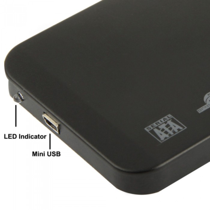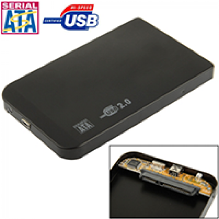 Externo kućište za 2.5 incha HDD diskove, sa SATA konektorom USB kablom 2.0 standard, koristi se za prenos podataka između računara i hard diska putem USB porta, sirovinskog sastava 80% aluminij, 20% PVC, pakovano u kartonskoj kutiji(crna)