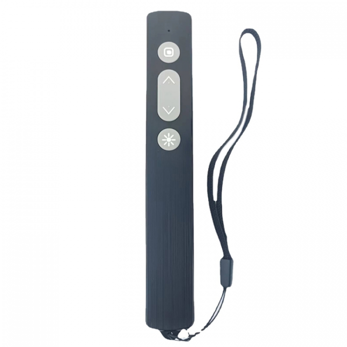 Multifunkcionalni bežični prezenter sa laserskim pokazivačem i USB prijemnikom, dizajniran za jednostavno upravljanje PowerPoint prezentacijama. Omogućava elektronsko okretanje stranica i pouzdanu 2.4 GHz vezu, idealan za predavanja, sastanke i poslovne prezentacije.